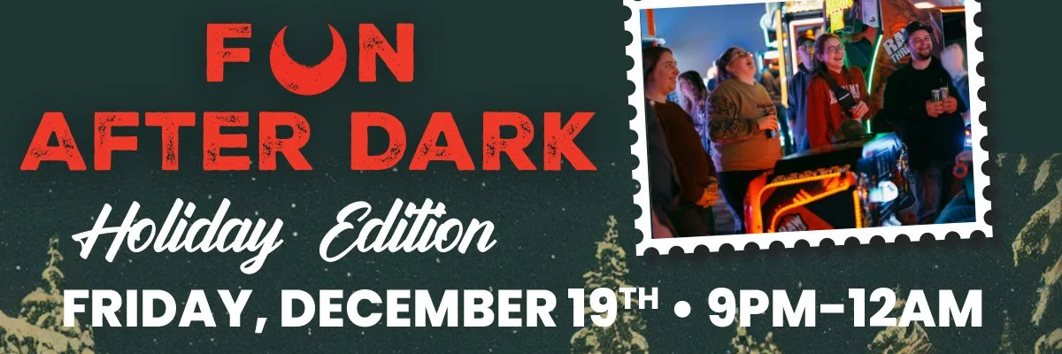 The best month just got even better—Fun After Dark is BACK! Join us on December 19th from 9 PM–12 AM for the ultimate late-night experience. Enjoy unlimited attractions, unlimited arcade games, and one drink ticket - all included for an unforgettable night!